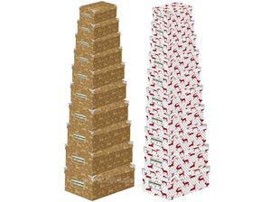 Boxenset Kartonage 10tlg., Metallgriffe, 2 Elch-, designs, Größen von: 10x5x6 cm bis: 37x30x15 cm