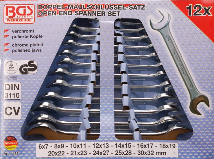 Doppelmaulschlüssel-Satz, nach DIN 3110, 6 x 7 - 27 x 32 mm, 12 tlg., BGS, Wv_1183