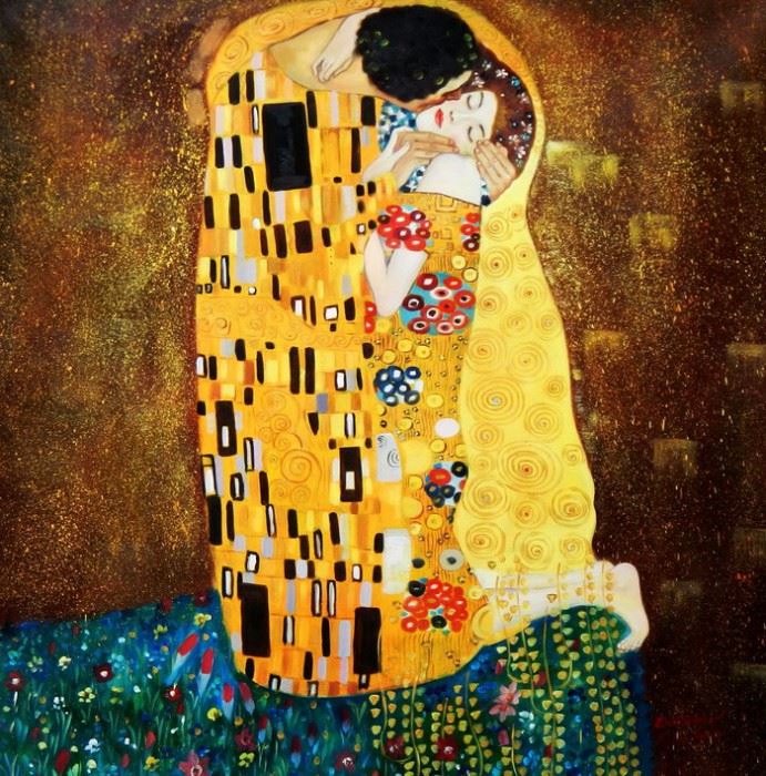 Gustav Klimt - Der Kuss g92348 80x80cm Jugendstil Ölgemälde handgemalt