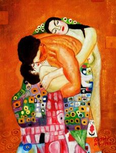 Gustav Klimt - Die Familie a90960 30x40cm Jugendstil Ölbild Dieses Gemälde ist meisterhaft mit Ölfarben handgemalt und auf fester Leinwand verewigt. Achtung, kein Kunstdruck! Alle alten Meister sind handgemalte Reproduktionen! Sie sehen hier das Originalfoto von dem Gemälde. Sie erhalten das Gemälde ohne das KD24 Logo