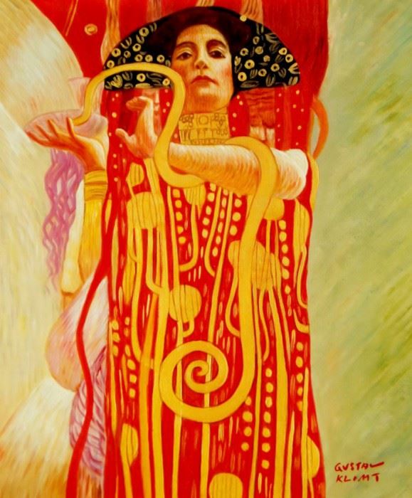 Gustav Klimt - Medizin c92142 50x60cm eindrucksvolles Gemälde handgemalt Dieses Gemälde ist meisterhaft mit Ölfarben handgemalt und auf fester Leinwand verewigt. Achtung, kein Kunstdruck! Alle alten Meister sind handgemalte Reproduktionen! Sie sehen hier das Originalfoto von dem Gemälde. Sie erhalten das Gemälde ohne das KD24 Logo