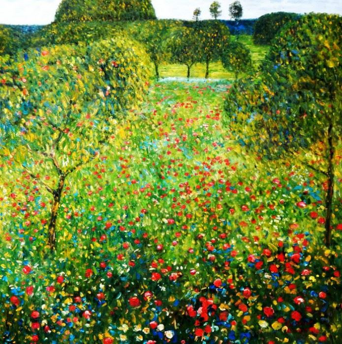 Gustav Klimt - Mohnfeld g92330 80x80cm Ölbild handgemalt