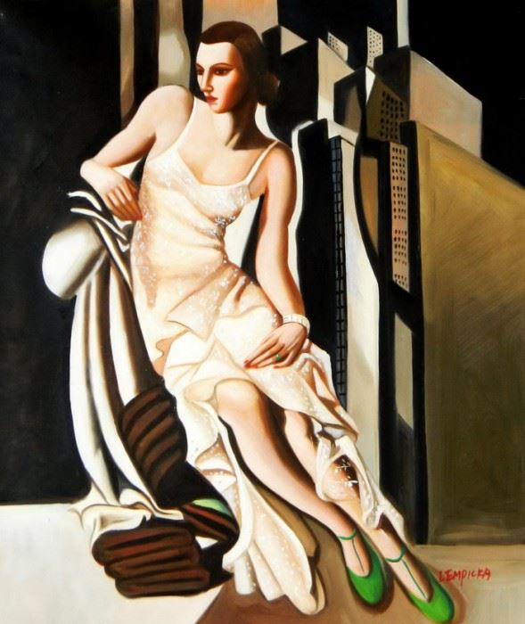 Homage of T. de Lempicka - Portrait der Madame Allan Bott c92155 50x60cm Ölbild handgemalt