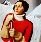 Homage to T. Lempicka - Sain Moritz g91332 80x80cm handgemaltes Gemälde Dieses Gemälde ist meisterhaft mit Ölfarben handgemalt und auf fester Leinwand verewigt. Achtung, kein Kunstdruck! Alle alten Meister sind handgemalte Reproduktionen! Sie sehen hier das Originalfoto von dem Gemälde. Sie erhalten das Gemälde ohne das KD24 Logo