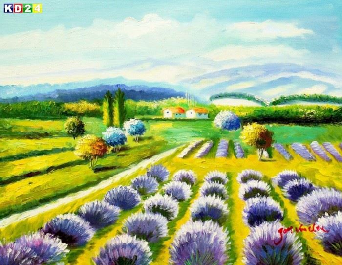 Lavendelfeld in der Toskana a87936 30x40cm fantastisches Ölbild handgemalt Dieses Gemälde ist meisterhaft mit Ölfarben handgemalt und auf fester Leinwand verewigt. Achtung, kein Kunstdruck! Alle alten Meister sind handgemalte Reproduktionen! Sie sehen hier das Originalfoto von dem Gemälde. Sie erhalten das Gemälde ohne das KD24 Logo