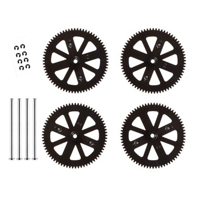 Lieferumfang: 4 Getriebe groß, 4 Getriebe klein, 4 Wellen und 8 Sicherungsringe