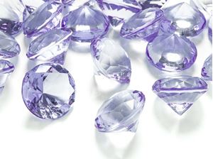 Deko-Steine aus Acryl, lila, Diamant 30 mm, 5 Stück in PVC Blisterbeutel mit Euroloch