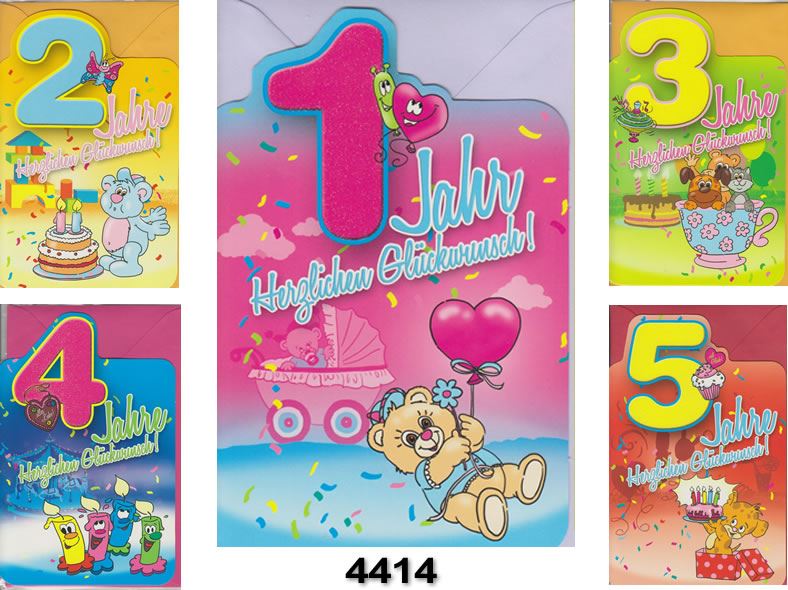 Zahlengeburtstagskarten für die Geburtstage 1-10. Die Karten sind mit lustigen Innentexten versehen. Die Karten sind bereits mit einer UVP von 2,25 € ausggepreist. Format: 11,5 x 17,5 cm, Hochformat Jede Karte ist einzeln in Cellophan verpackt