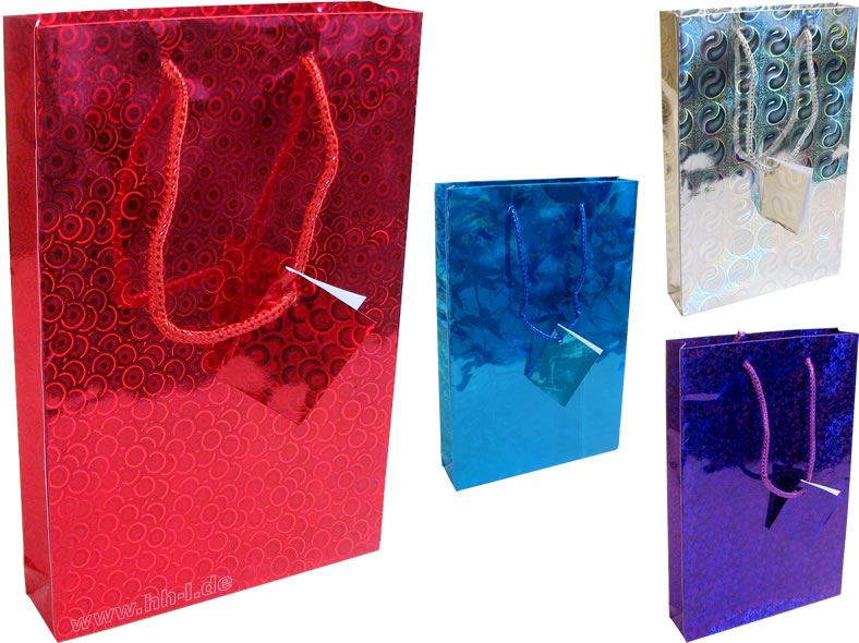 Geschenkbeutel CD/DVD (150x35x229 mm), Holographie, 4 Farben sortiert, auch für Bücher geeignet