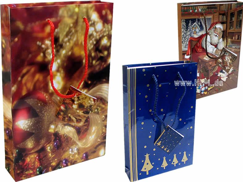 Geschenkbeutel CD/DVD (150x35x229mm), Weihnachten, 6 Motive sortiert, Material: Lackpapier