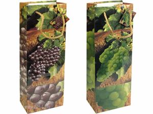 Geschenbeutel Flasche Motive: Weinreben, Weintrauben 2 fach sortiert hochwertiges kaschiertes 130g pro qm Papier mit Tragekordel und Geschenkanhänger Wir bitten Sie, zu beachten, dass diese Tüten ein qualitativ hochwertiges Produkt sind und nicht mit den