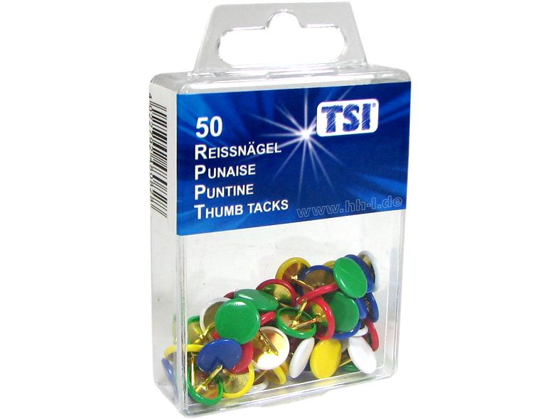 Heft- / Reißzwecken 50er-Pack, bunt gemischt, mit Kunststoffüberzug, in Klarsichtbox