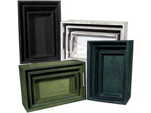 Holzkisten, 3er Set, rechteckig mit Griffen,, 4 Farben sortiert, 30x20x13, 27x17x10, 23x13x7 cm