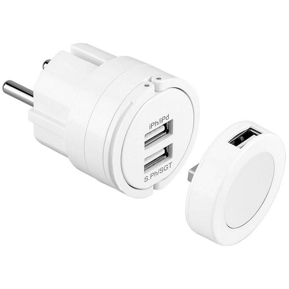 Ladegerät / Adapter 230V auf 2x USB, 2,1A , WHITE (mit 2-fach USB Adapter auf 2x seitlicher Ladeanschluss)