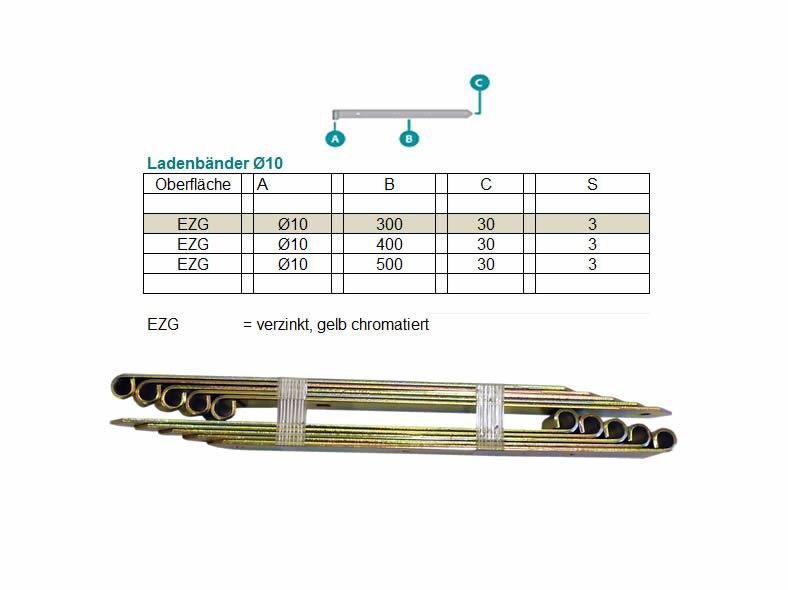 Ladenband gelb verzinkt, Länge 300 mm, Stärke 3 mm / für Klobe 10 mm Art.Nr.:20300