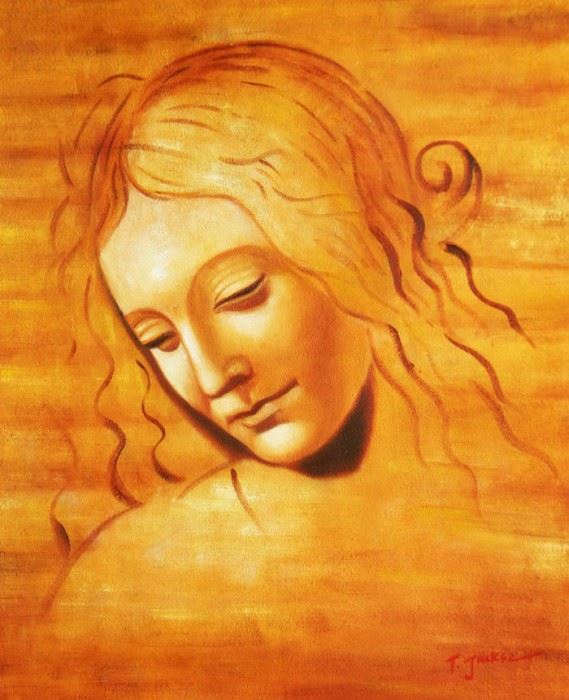 Leonardo da Vinci - Frauenkopf b91585 40x50cm exzellentes Ölbild Dieses Gemälde ist meisterhaft mit Ölfarben handgemalt und auf fester Leinwand verewigt. Achtung, kein Kunstdruck! Alle alten Meister sind handgemalte Reproduktionen! Sie sehen hier das Originalfoto von dem Gemälde. Sie erhalten das Gemälde ohne das KD24 Logo