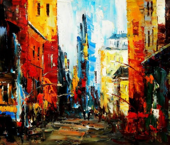 Modern art - The Streets of Brooklyn c89404 50x60cm exquisites Ölbild Dieses Gemälde ist meisterhaft mit Ölfarben handgemalt und auf fester Leinwand verewigt. Achtung, kein Kunstdruck! Alle alten Meister sind handgemalte Reproduktionen! Sie sehen hier das Originalfoto von dem Gemälde. Sie erhalten das Gemälde ohne das KD24 Logo
