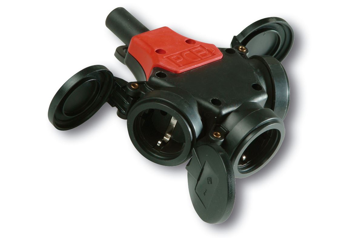 Kupplung Schuko 3-fach Vollgummi mit Klappdeckeln