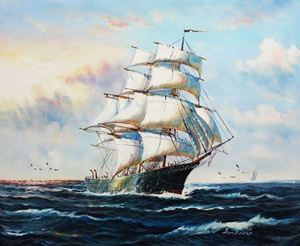 Segelschiff auf stürmischer See c92284 50x60cm imposantes Ölgemälde Dieses Gemälde ist meisterhaft mit Ölfarben handgemalt und auf fester Leinwand verewigt. Achtung, kein Kunstdruck! Alle alten Meister sind handgemalte Reproduktionen! Sie sehen hier das Originalfoto von dem Gemälde. Sie erhalten das Gemälde ohne das KD24 Logo
