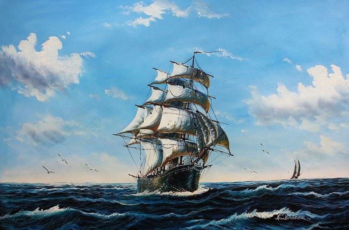 Segelschiff auf stürmischer See d92272 60x90cm imposantes Ölgemälde Dieses Gemälde ist meisterhaft mit Ölfarben handgemalt und auf fester Leinwand verewigt. Achtung, kein Kunstdruck! Alle alten Meister sind handgemalte Reproduktionen! Sie sehen hier das Originalfoto von dem Gemälde. Sie erhalten das Gemälde ohne das KD24 Logo