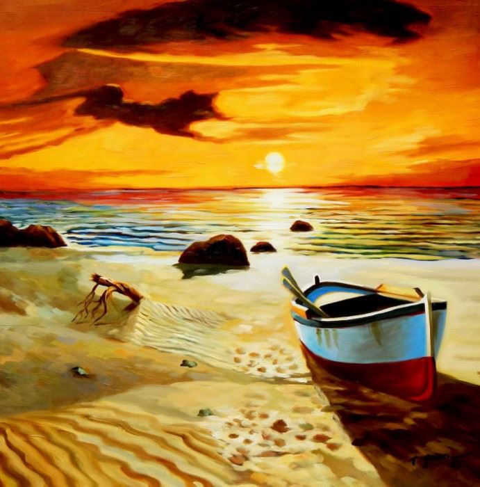 Sonnenuntergang am Strand von Sylt g91813 80x80cm exzellentes Ölgemälde Dieses Gemälde ist meisterhaft mit Ölfarben handgemalt und auf fester Leinwand verewigt. Achtung, kein Kunstdruck! Alle alten Meister sind handgemalte Reproduktionen! Sie sehen hier das Originalfoto von dem Gemälde. Sie erhalten das Gemälde ohne das KD24 Logo