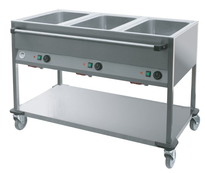 Bain Marie Wagen, 1250x700x900 mm, 3x Becken für 1/1 GN,