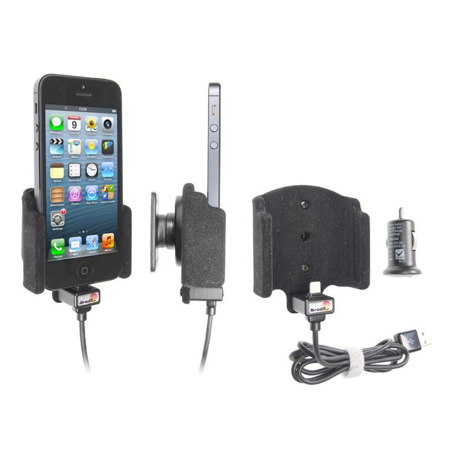 Brodit Halter Aktiv USB, 12V, für Apple iPhone 5 / iPhone 5S, Gepolstert (Filzschutz), inkl. USB-Ladegerät, Ladekabel ist von Apple lizenziert!