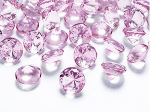 Deko-Steine aus Acryl, hell pink, Diamant 20 mm, 10 Stück in PVC Blisterbeutel mit Euroloch