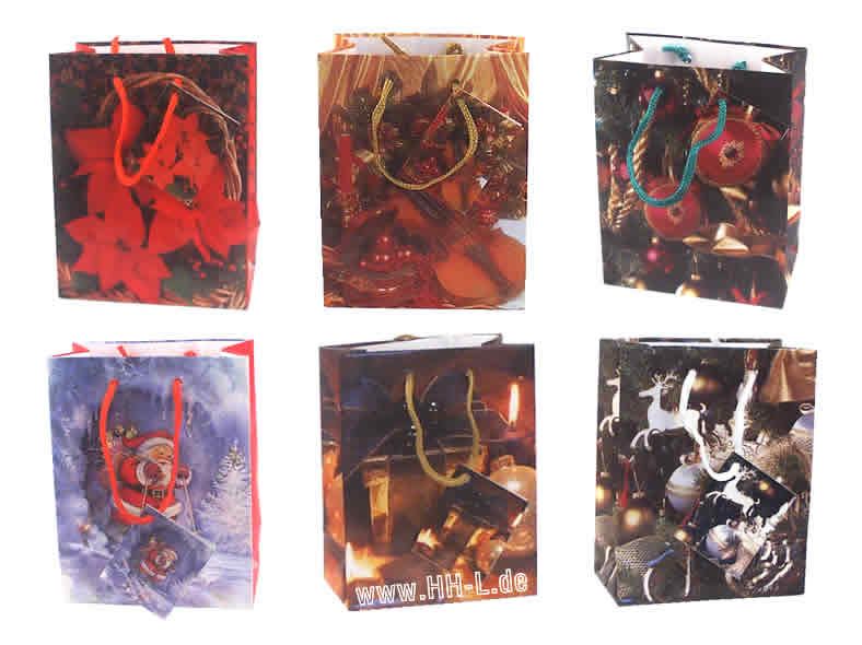 Geschenkbeutel mittel (180x100x227 mm) Weihnachten, 6fach sortiert, Material: Lackpapier