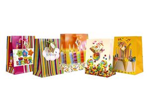Geschenkbeutel mittel (230 x 180 x 100 mm), mit farbigen Kordeln in 5 Designs Geburtstag