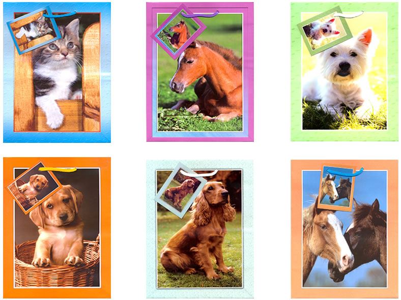 Geschenkbeutel mittel (230 x 180 x 95 mm), mit farbiger Kordel in 10 Designs, Tiermotive
