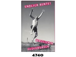 Glückwunsch-Karte ''Endlich Rente'' für Männer, einzeln in Cello verpackt, mit rotem Umschlag