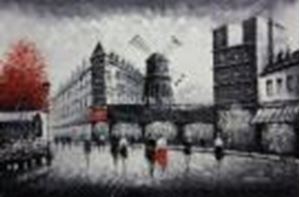 Modern Art Spaziergang am Moulin Rouge Paris d88766 60x90cm Ölbild handgemalt Dieses Gemälde ist meisterhaft mit Ölfarben handgemalt und auf fester Leinwand verewigt. Achtung, kein Kunstdruck! Alle alten Meister sind handgemalte Reproduktionen! Sie sehen hier das Originalfoto von dem Gemälde. Sie erhalten das Gemälde ohne das KD24 Logo