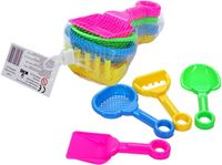 Sandspielzeug 4tlg. Schaufel, Sieb, Rechen, LBH: 17x10 cm, aus Kunststoff, im Netz