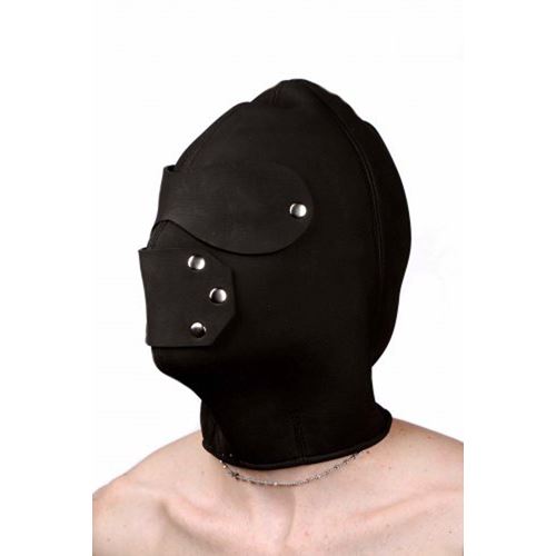 Mit dieser Schwarzen Kopfkappe für SM mit Öffnungen für Augen und Mund können Sie Ihre/n Partner/in vollkommen von der Welt absondern. Er oder sie sieht oder riecht nichts mehr und wartet in sinnlicher Spannung ab, welche Pläne Sie im SM-Spiel haben.