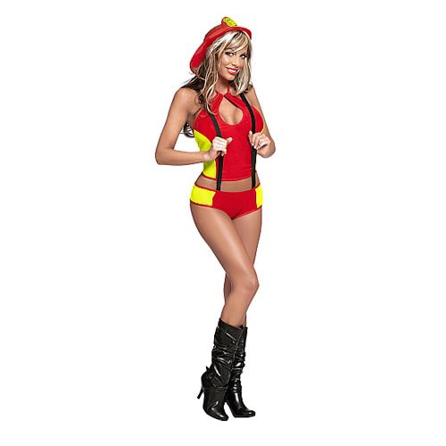 Mit diesem Feuerwehr-Kostüm geht es ganz schön heiß her. Dieses Set ist ideal für Ihr Lieblingsrollenspiel und besteht aus einem roten Neckholder-Oberteil mit Aussparung an der Vorderseite und einer passenden roten Short mit schwarzen Hosenträgern.