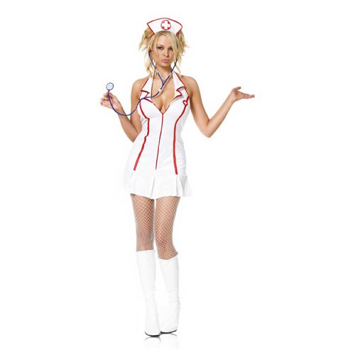 Seien Sie in diesem 3-teiligen Krankenschwesterkostüm, bestehend aus weißem Kleid mit tief ausgeschnittenem Dekolleté, Stethoskop und passendem weißem Haarband mit rotem Kreuz, eine provokante Krankenschwester. In diesem Krankenschwesterkostüm sind Sie be