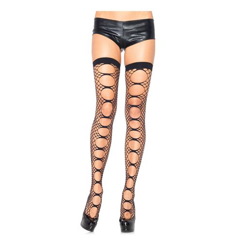 Nichts vollendet Ihre Dessous so reizend wie traumhaft verführerische Strümpfe. Diese schwarzen Netzstrümpfe haben dekorative große Löcher an der Vorderseite. Merkmale: - Material: 87 % Nylon, 13 % Elastan - Farbe: schwarz - Marke: Leg Avenue -