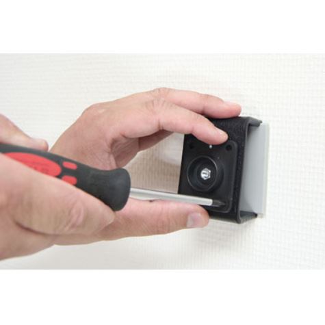 • Das  Befestigungsstück (die Montageplatte)  wird mit 4 Löchern und den passenden Schrauben ausgeliefert und hat eine Montagefläche von ca. 50 x 42 mm.