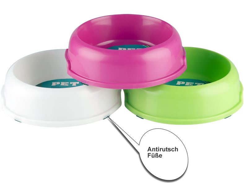 Freßnapf aus Kunststoff PP, 900 ml, 4 Farben sortiert, mit Antirutsch-Füßen