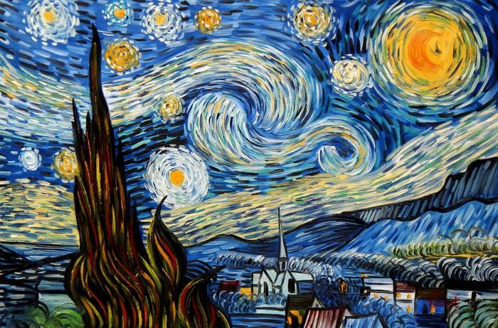 Vincent van Gogh - Sternennacht d92233 60x90cm exzellentes Ölgemälde handgemalt Dieses Gemälde ist meisterhaft mit Ölfarben handgemalt und auf fester Leinwand verewigt. Achtung, kein Kunstdruck! Alle alten Meister sind handgemalte Reproduktionen! Sie sehen hier das Originalfoto von dem Gemälde. Sie erhalten das Gemälde ohne das KD24 Logo