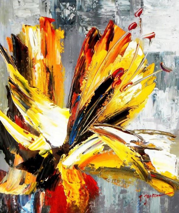 Abstract - yellow orchid c92153 50x60cm Ölgemälde handgemalt Dieses Gemälde ist meisterhaft mit Ölfarben handgemalt und auf fester Leinwand verewigt. Achtung, kein Kunstdruck! Alle alten Meister sind handgemalte Reproduktionen! Sie sehen hier das Originalfoto von dem Gemälde. Sie erhalten das Gemälde ohne das KD24 Logo