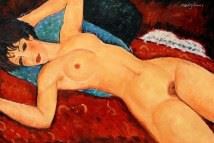 Amedeo Modigliani - Akt mit blauem Kissen d91535 60x90cm exzellentes Ölbild Dieses Gemälde ist meisterhaft mit Ölfarben handgemalt und auf fester Leinwand verewigt. Achtung, kein Kunstdruck! Alle alten Meister sind handgemalte Reproduktionen! Sie sehen hier das Originalfoto von dem Gemälde. Sie erhalten das Gemälde ohne das KD24 Logo