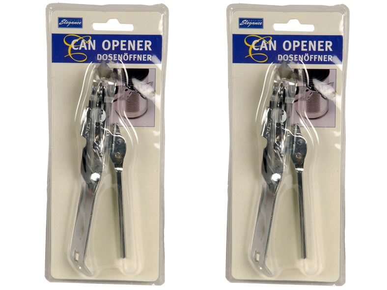 Dosenöffner aus Metall im Blister, robuste Ausführung mit Flaschenöffner
