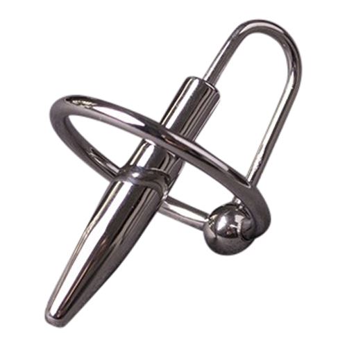 Glänzender Penisring mit Penisplug. Der Plugteil dieses Qualitätsaccessoires wird in die Harnröhre eingeführt. Je tiefer der Plug eingeführt wird, desto weiter oben sitzt der Ring rund um die Eichel. Der Bogen mit dem Plug ist flexibel am Ring montiert, w