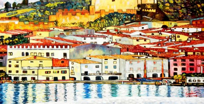 Gustav Klimt - Malcesine am Gardasee f91786 60x120cm Ölbild handgemalt