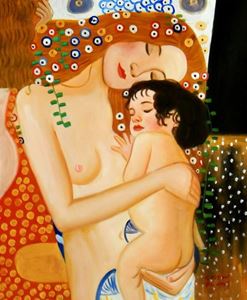 Gustav Klimt - Mutter mit Kind c91608 50x60cm Jugendstil Ölgemälde handgemalt Dieses Gemälde ist meisterhaft mit Ölfarben handgemalt und auf fester Leinwand verewigt. Achtung, kein Kunstdruck! Alle alten Meister sind handgemalte Reproduktionen! Sie sehen hier das Originalfoto von dem Gemälde. Sie erhalten das Gemälde ohne das KD24 Logo