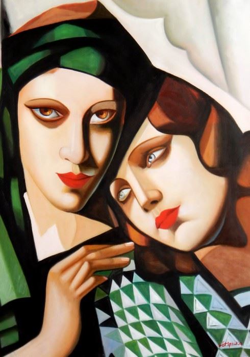 Homage of Tamara de Lempicka - Der grüne Turban i91851 80x110cm exquisites Ölbild Dieses Gemälde ist meisterhaft mit Ölfarben handgemalt und auf fester Leinwand verewigt. Achtung, kein Kunstdruck! Alle alten Meister sind handgemalte Reproduktionen! Sie sehen hier das Originalfoto von dem Gemälde. Sie erhalten das Gemälde ohne das KD24 Logo