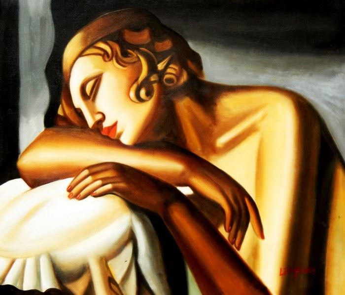 Homage of Tamara de Lempicka - Die Schläferin II c92507 50x60cm Art Deco Ölbild handgemalt