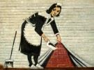 Homage to Banksy - Sweeping Under Wall a87419 30x40cm exquisites Ölbild Dieses Gemälde ist meisterhaft mit Ölfarben handgemalt und auf fester Leinwand verewigt. Achtung, kein Kunstdruck! Alle alten Meister sind handgemalte Reproduktionen! Sie sehen hier das Originalfoto von dem Gemälde. Sie erhalten das Gemälde ohne das KD24 Logo